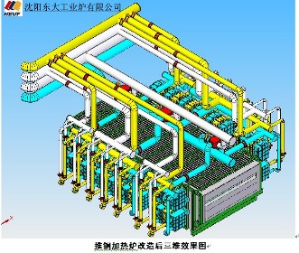 原加热炉有效长20.9米,炉内宽8.6米。加热炉投产后由于设计、操作等方面问题导致加热炉内炉压偏高,炉头、炉尾冒火,燃烧不完全,进而导致产量达不到规定要求。公司承建这次蓄热式推钢加热炉改造工程的目的就是要彻底解决蓄热加热炉在设计上普遍存在的共同问题,将公司在蓄热燃烧方面的诸多成果集成应用于该炉改建项目中,树立国内蓄热式加热炉的示范项目。加热炉改造的主要措施是: