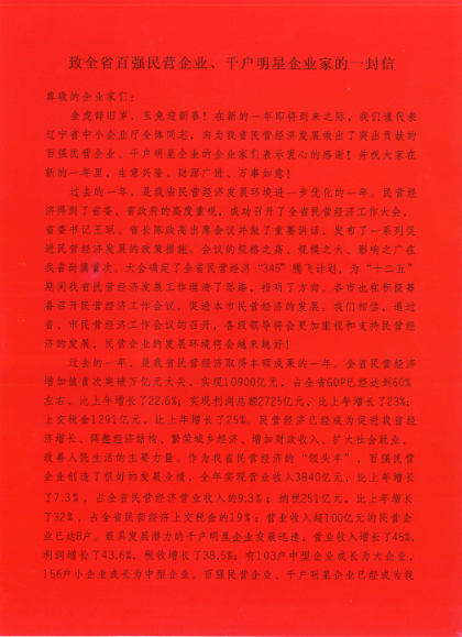 祝贺公司获辽宁省“全省民营明星企业”称号