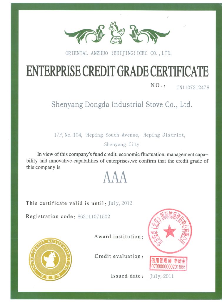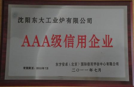 针对公司的资金信用、经济效益、经营管理能力、企业创新能力,经东方安卓(北京)国际信用评估中心有限公司调研、审核、评估,沈阳东大工业炉有限公司信用等级评定为AAA级。 信用等级通常是指基于评估对象的信用、品质、偿债能力以及资本等的指标级别,我国企业信用评估的信用等级采用国际通行的"四等十级制"评级等级,具体等级分为:AAA,AA,A,BBB,BB,B,CCC,CC,C,D。其中,AAA级即指企业信用极好,企业的信用程度高、债务风险小。该类企业具有优秀的信用记录,经营状况佳,盈利能力强,发展前景广阔,不确定性因素对其经营与发展的影响极小。