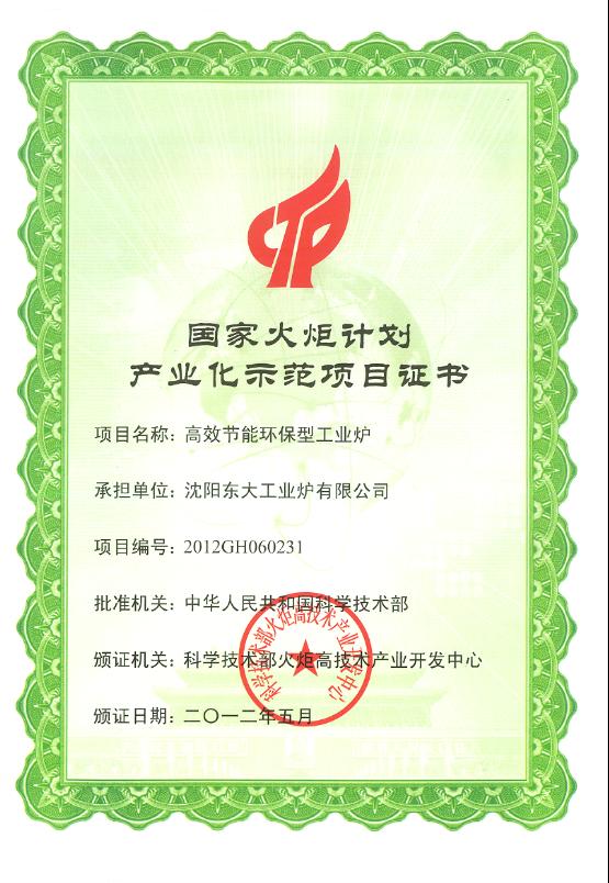 公司申报的国家火炬计划产业化示范项目:高效节能环保型工业炉经中华人民共和国科学技术部批准成功立项,项目编号2012GH060231,目前项目立项证书已下发。