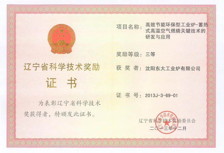我公司申报的“高效节能环保型工业炉—蓄热式高温空气燃烧关键技术的研发与应用”项目获市三等奖,获奖证书目前已下发。