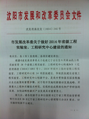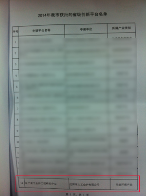 2014年12月,沈阳东大工业炉有限公司申报“辽宁省工业炉工程研究中心”获得辽宁省发展和改革委员会批准。
