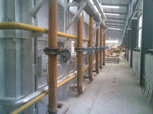公司合同能源管理案例2:郑州开阳窑具制品有限公司新型蓄热式节能梭式窑项目,三座耐火材料烧成用梭式窑,窑炉有效容积为60m3。设计采用内置式蓄热燃烧方式,炉型结构简洁,热效率较高,窑体采用了60°拱形顶和复合炉墙结构,减少炉体散热损失。这种新型高温间歇窑窑升温快、温差小,产品焙烧质量可达95%以上,是目前国内陶瓷及耐火材料行业较先进的热工设备之一。