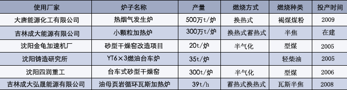 2005年在沈阳金龟减速机厂,国内首次改造传统的燃煤沙型干燥窑,以型煤做为燃料,采用半煤气化燃烧方式成功解决了煤室的污染问题,各项排放招标达到环保要求,并且与燃煤窑相比节能50%以上,成为沈阳市节能环保示范项目。